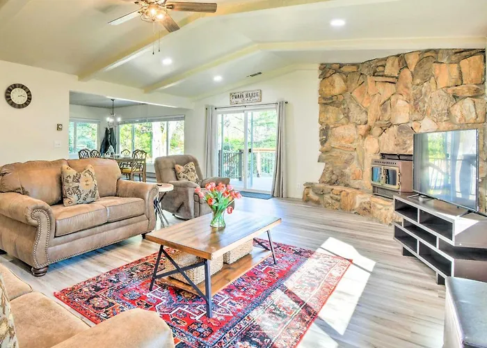 The 2-bedroom Sherwood Forest Cabin With Deck And Fire Pit! is located about 10 minutes by car from Sierra Pines Golf Course, giving access to various tourist spots nearby.